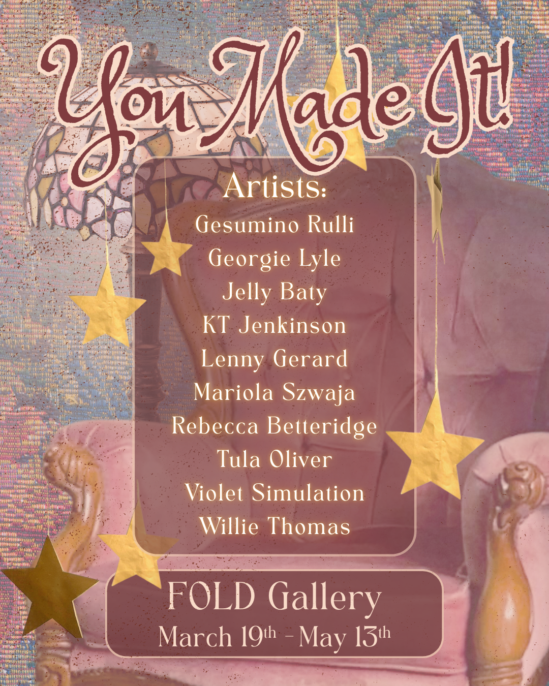 You Made It! celebrates the relief of arrival and the hard won beauty of belonging. Through intimate scenes, gentle gestures, and affirming spaces, the exhibition centers queer artists’ construction of home, comfort, and connection. These works invite viewers into a place where nothing needs to be explained, a reminder that sometimes, simply being is enough.