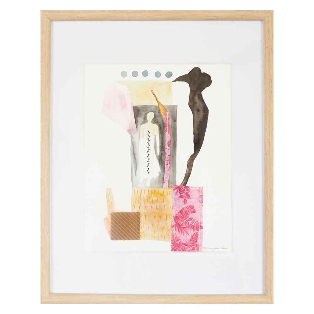 Watercolor, hand-cut paper and cloth