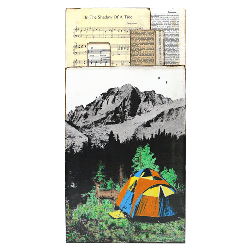 "A native of Kinderhook, NY, Patrick Haemmerlein is an artist living and working in Los Angeles. After receiving his BFA from The Savannah College of Art and Design in 2000, Patrick settled down in LA. Here he began to obsessively photograph the city and its components. This gradually moved into a new art form as he started to combine & create with the images he was shooting. Reflecting on the issues of the day, Patrick explores themes of Nature Vs. Industry and how they can coexist or clash. The images are all designed from photographs that Patrick has taken. The buildings and cityscapes are from Los Angeles while the animals are taken on trips outside the city in Southern California. He still incorporates farm life and animal photos from his hometown in Kinderhook as well. He hand-paints his pieces and incorporates vintage ephemera, especially music sheets that fit the tone of the artwork. They are not only a juxtaposition of nature and industry, but a combination of imagery from his two homes - one rural and one urban."