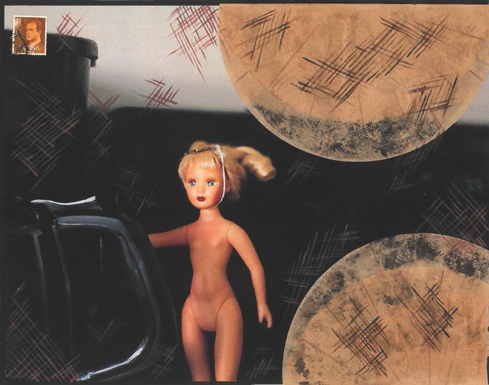 "Lucille is a rare preteen Cinderella doll I found at St Vincent De Paul thrift in Lincoln Heights. This series documents four months of time spent with her as a means of exploring intentional solitude, reflected perceptions and fostering greater self care/self love through the act of play. The end result is a combination of both still film and mixed media illustration. My main interest is in the merging of concrete objects and projected fantasies."