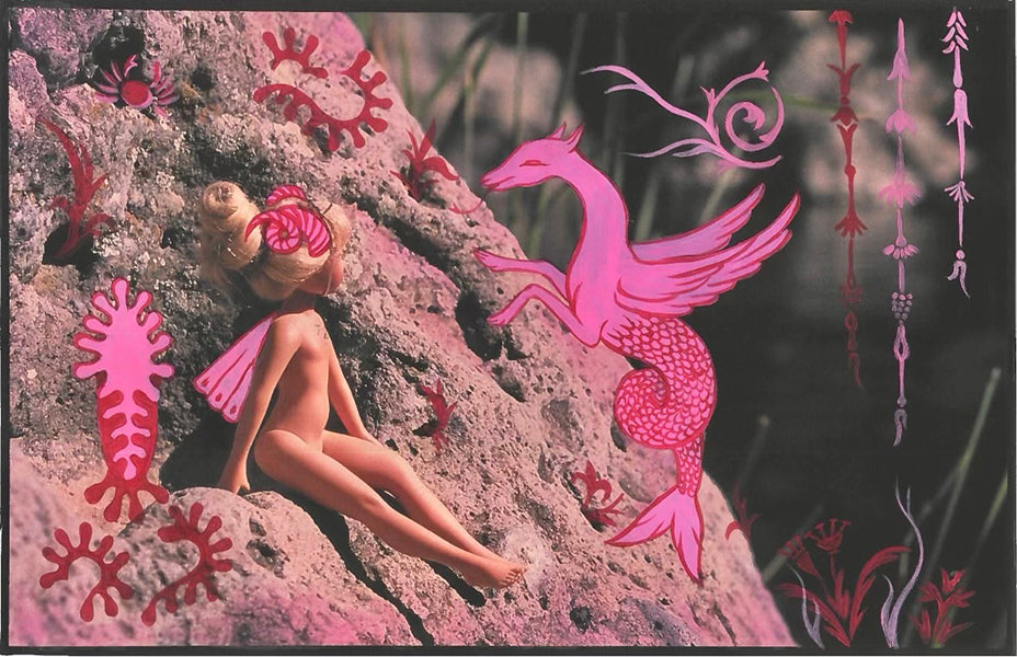 "Lucille is a rare preteen Cinderella doll I found at St Vincent De Paul thrift in Lincoln Heights. This series documents four months of time spent with her as a means of exploring intentional solitude, reflected perceptions and fostering greater self care/self love through the act of play. The end result is a combination of both still film and mixed media illustration. My main interest is in the merging of concrete objects and projected fantasies."