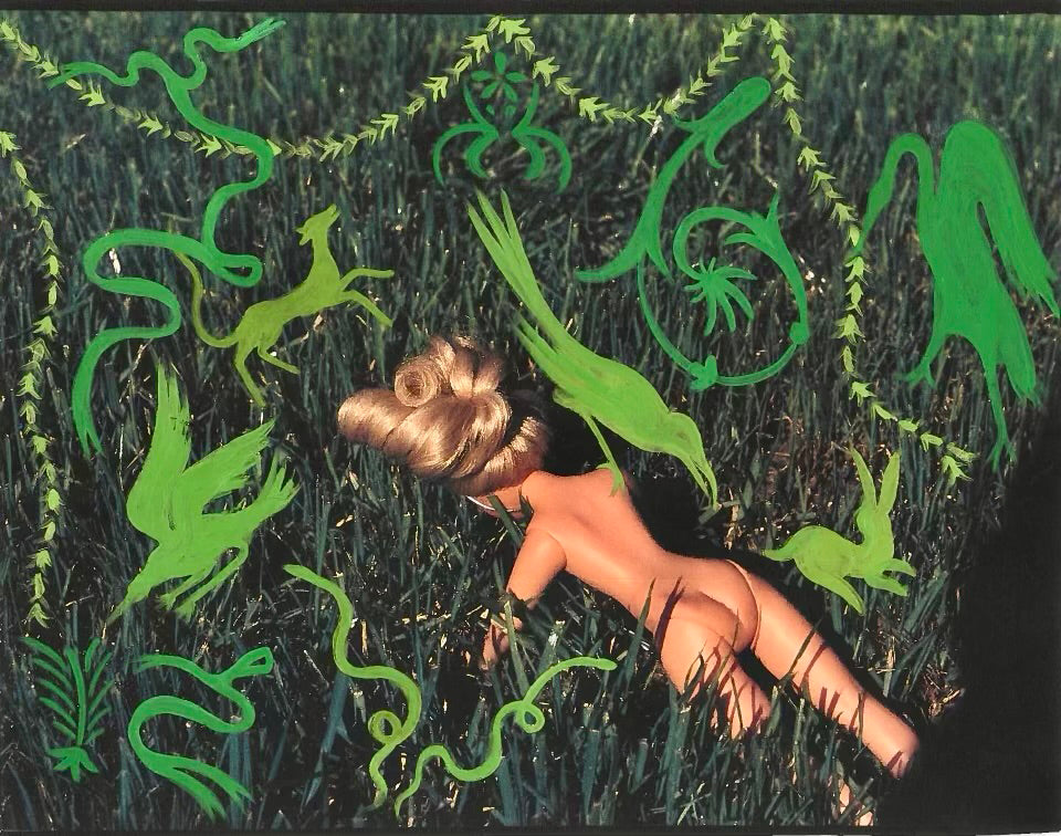 "Lucille is a rare preteen Cinderella doll I found at St Vincent De Paul thrift in Lincoln Heights. This series documents four months of time spent with her as a means of exploring intentional solitude, reflected perceptions and fostering greater self care/self love through the act of play. The end result is a combination of both still film and mixed media illustration. My main interest is in the merging of concrete objects and projected fantasies."