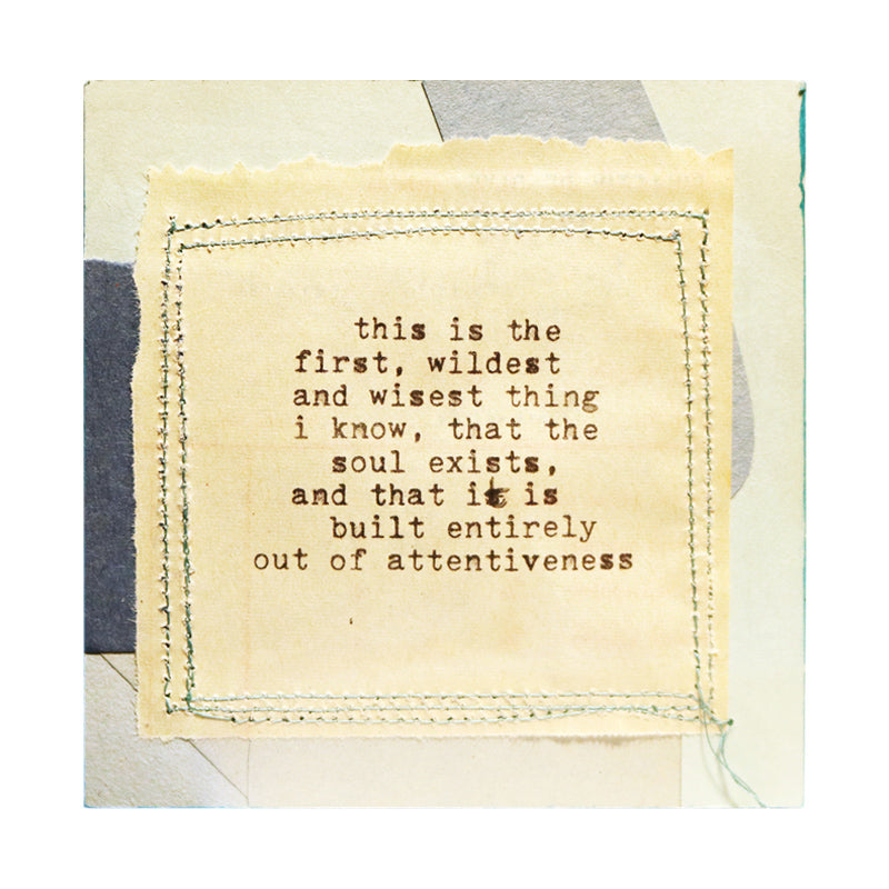 "Molly creates art that tells the untold stories. She listens to the past speaking through the objects she collects and is fascinated by the history behind a long saved, but seemingly insignificant item: The meaning rarely lays on the surface, but is buried underneath. Her artwork, too, contains messages hidden underneath. She is heavily influenced by a scrap of paper, a single word, opera, rap, theremins, the thick cotton of an old book page, random sentences, and overheard statements. She is passionate about nature and creates work to appear as affected by the natural world; worn down by the environment but in a much-loved way."