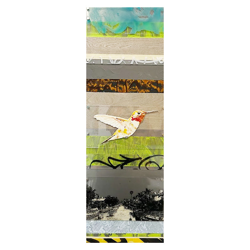 My collaged paintings are created with fragments of images, objects, textures and colors that are inspired by my day to day observations. The